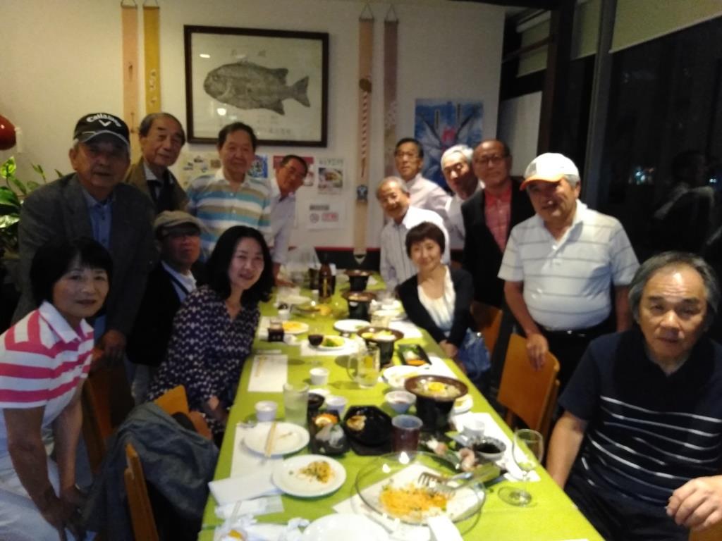 プレイ終了後参加者15名で近隣の居酒屋「あしずり」で懇親会を開催、表彰式のあと新入会員の挨拶、