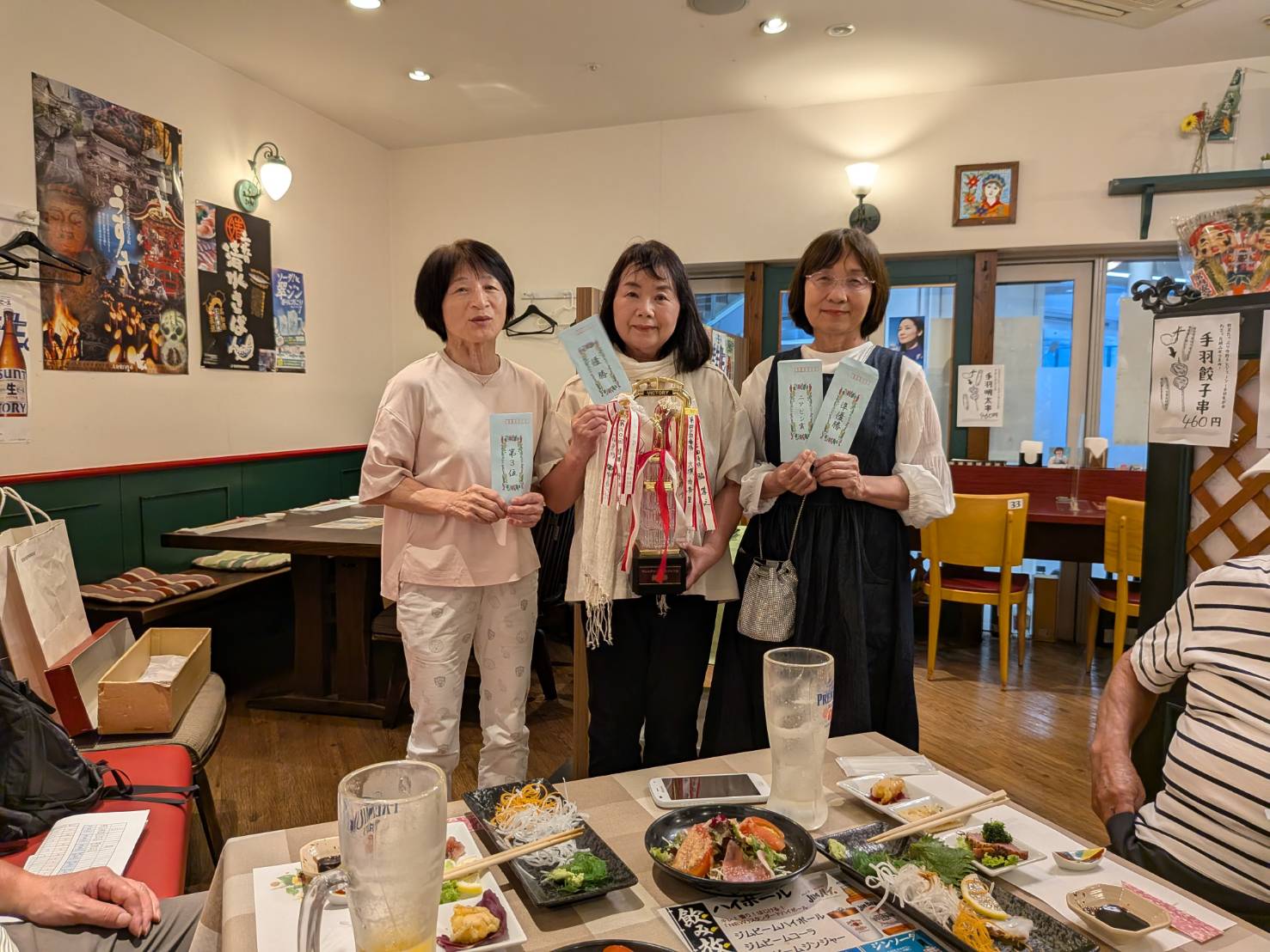 7月9日には参加者10名で納涼会と、86回の表彰式を地元居酒屋「あしずり」で行いました。